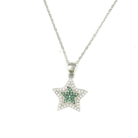 • Πέτρες: Λευκά ζιρκόν pavé + κεντρικό αστέρι με πράσινα ή τιρκουάζ ζιρκόν
