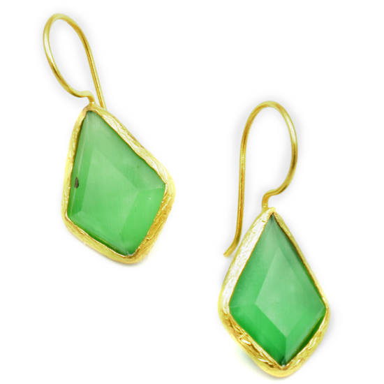 Τα MYRA earrings συνδυάζουν το έντονο πράσινο του όνυχα με γεωμετρικό, σύγχρονο σχήμα.