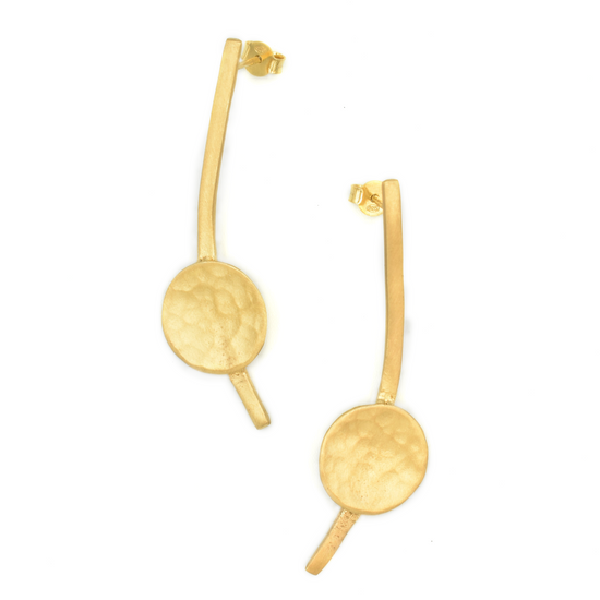 • Σχέδιο: Επιμήκη σκουλαρίκια με λεπτή καμπύλη και σφυρήλατο κυκλικό στοιχείο