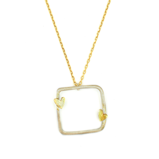 Το SERAYA παίζει με καθαρές γραμμές και ήρεμες καμπύλες. Το ανοιχτό τετράγωνο δίνει μοντέρνο χαρακτήρα, ενώ οι μικρές καρδιές προσθέτουν μια διακριτική, γλυκιά λεπτομέρεια. Ένα κομμάτι με ανάλαφρο, contemporary feel που φοριέται άνετα κάθε μέρα.