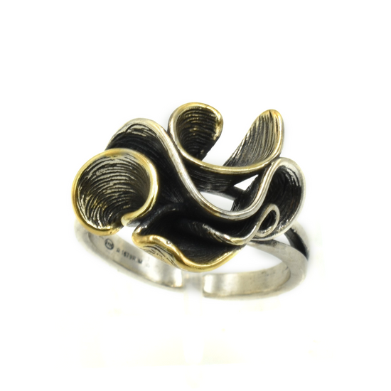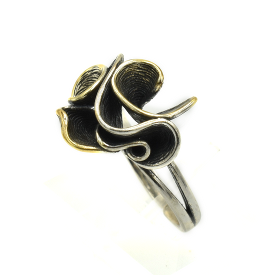 Το THALEIA είναι ένα δαχτυλίδι-έργο τέχνης, εμπνευσμένο από τη φυσική ροή των πετάλων. Συνδυάζει vintage αισθητική με σύγχρονη τεχνική.