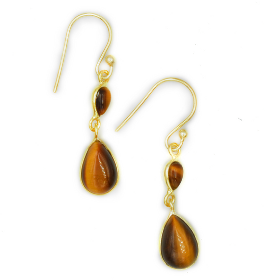 Τα TAYRA αποπνέουν φυσική αρμονία και γήινη κομψότητα. Κατασκευασμένα από ασήμι 925 με χρυσή επιμετάλλωση, φέρουν πέτρες “μάτι της τίγρης” σε δάκρυ σχήμα, που αντικατοπτρίζουν το φως με μοναδικό, θερμό τόνο.
